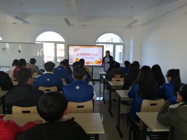为贯彻落实全国高校思想政治工作会议精神,和中共中央、国务院《关于加强和改进新形势下高校思想政治工作的意见》(中发 [2016]31号文件),贯彻全省高校思想政治工作会议精神,积极推进我校思想政治理论课教育教学改革,加强思想政治理论课教师队伍建设。值此十九大胜利召开之际,我校学生处处长高成林、团委书记成名、现代服务系主任于庆霞、财经商贸系主任林晓慧等多名领导于2017年11月13日至24日陆续走进思政课堂,与同学们分享十九的喜悦,传递十九大精神。