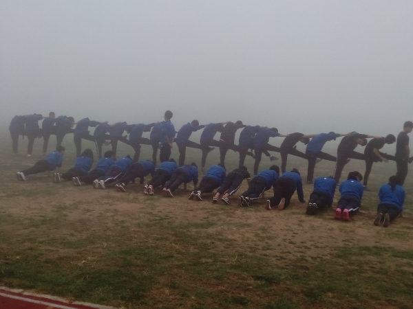 飞鹰心灵成长工作室的14届纳新活动已经告一段落,通过之前所举办的活动让14届新成员对“飞鹰”有了更深的了解,继之而来的是对新成员的培训——雏鹰成长计划。第一项是体能基础训练,通过对体能的考验,磨练意志,以及心性。以此为以后他们的各项工作奠定基础。身体才是“革命”的本钱,拥有一个健康的身体,在工作学习中,才能充分发挥自己的主观能动性,调整好自己的状态。积极参与这样的团体活动,对于锻炼我们的团队精神会起到很大的作用。2014年10月6日起14届新成员迎来了一次全新的挑战。 早上这帮小鹰们蓄势待发等待着挑战的到来,星期一的清晨天空中茫茫然的一片、雾气缭绕,但无法阻挡他们的热情,在主教练赤鹰的带领下,准备活动、跑步、发声练习、梯队俯卧撑、梯队压腿等,一切有序的进行着。这是一种体能的考验,是一种自我的超越。小鹰们坚持着,拼搏着,为了自己的团队付出着。就像是今后在飞鹰的旅程,要么坚持到最后,要么就不要开始,如果不真正体验,就不会有所收获。再长的路,一步步的走,终会到达终点。再近的距离,你不迈出一步,终究无法到达。 晨练是一件简单的事情,可是从简单的事情看到的却是不凡的道理。含泪播种的人一定能含笑收获。期待小鹰们在成长的道路上,有更加精彩的表现。