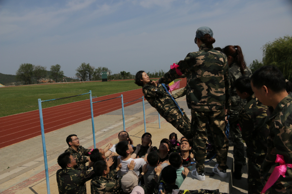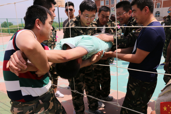 在秃鹫教官的指导下,精英们站在1.75m的跳台上,直挺挺的向后倒下的时候,在台下方的同事会用手托起成一个“人床”把台上摔下的人接住。让学员们克服内心的恐惧,建立彼此的信任。相信在未来的工作和生活中,精英们可以轻松地跨越心理障碍,成为强者。