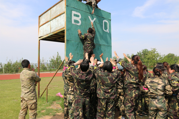 毕业墙是拓展项目最难的之一,每个人要翻越4.25米垂直的围墙,这是一个必须依靠集体的力量才能完成的项目。开始时,精英们还畏手畏脚,通过集思广益,精英们采用叠人墙方法一一翻过。精英们相信依靠团队的力量,就一定能战胜困难。让我们明白一个优秀的团队,必须具备团结、信任与协作。