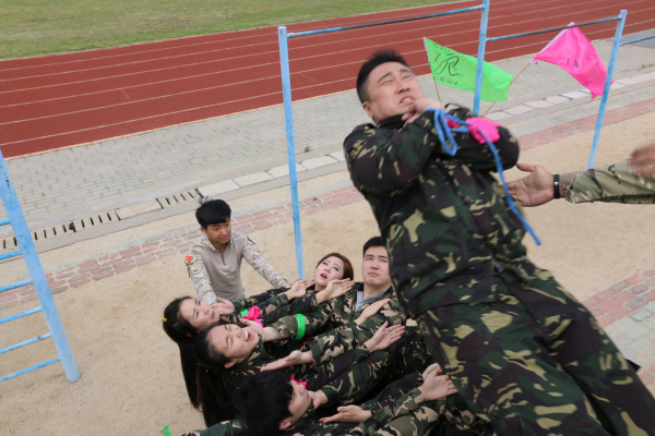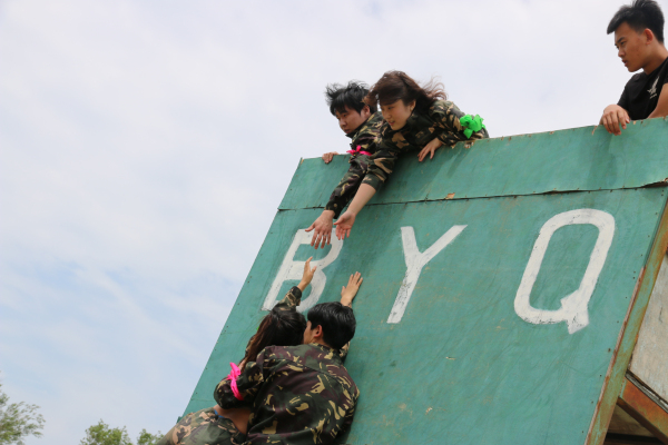 承嘉集团的精英们在教官秃鹫的引导下,每个人都要翻越一堵4.25米且垂直的围墙,开始时,队员们看到胆怯、恐慌、害怕有危险。但是经过精英们的集思广益,采用叠人墙的方法,让精英们一一地翻越高墙,当他们做到时,队员鼓掌欢呼,喝彩。我相信在未来精英们永远记得做毕业墙时,每个人的奉献和付出,换来了团队的成功!公司的发展不仅需要运筹帷幄,冲锋陷阵的将帅骨干,更需要辛勤工作的普通员工,正是精英们俯首甘为孺子牛的精神,才奠定了成功的基后,托起了事业的希望。没有最好的个人,只有最好的团队。