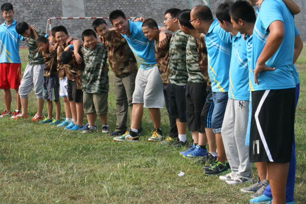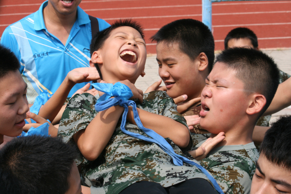 在教官的带领下,学员们穿着整齐的对付服,在操场上进行破冰小游戏。小朋友们在欢声笑语中,克服害怕的情绪和性格孤僻心里,更好的融入团队中。