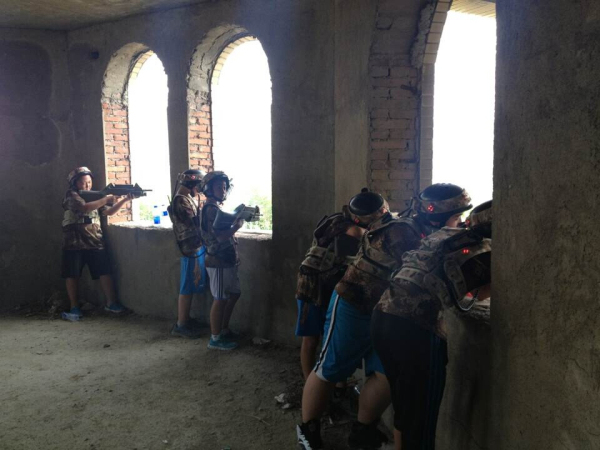 下午1点10分,学员们休息过后,在主教练秃鹫带领下,学员们整装待发,进行了期待已久的真人CS野战。