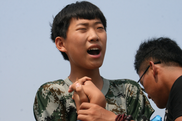 小学员们站在1.5米的高台上,背对大家进行背摔。对年龄较小的他们来说,是一项非常大的挑战。在全队学员的鼓励下,挑战了自我内心的恐惧,战胜了自我,这就是团队给你带来的力量。