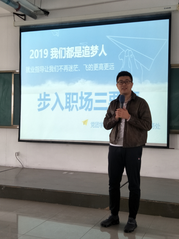 时光荏苒,两年的时光转瞬即逝。2019年全国应届毕业生将达到834万!人工智能的出现取代了很多传统的岗位,如何在激烈的竞争环境中,做好求职准备,明确目标、少走弯路,是每位即将毕业的枫叶学子,最关注的问题。为此,我院思政部联合党、团、学、就创业、教务处邀请到“大连市兰夫公司总经理:于宗杰先生”莅临我校,为2017级枫叶学子带来“步入职场前三要素”专题讲座。出席本次活动的领导有党办主任聂俭丽、团委书记成名、创业就业办主任张晓洁,政体部主任张淑萍。