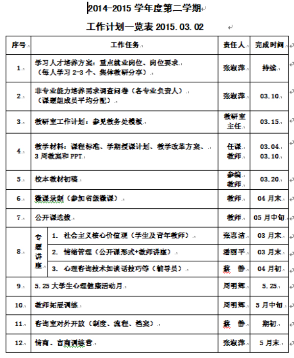 ㈡ 校本教材:《大学生心理健康教育》课程校本教材初稿将于3月末完成,4月初进行性修订调整,15年8月首轮试用,调整后争取出版。