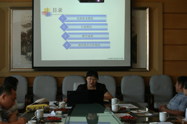 1.各系系主任介绍学院现有专业情况及各专业特色、校企合作情况。