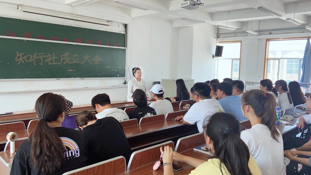 在知行社成立大会上,韩晓露主任首先对参与知行社成员的加入表示了热烈的欢迎,韩主任说:“知行社是一个大家庭,我们存在的意义就在于服务于我们的同学,加入了这个集体,就要做到尽职尽责,要有吃苦耐劳,乐于奉献的精神,我们是一个有组织、有纪律的团体,只有做到严于律己,才能够树立良好的形象,成为一名合格的、优秀的知行社成员。”接着,又向同学们介绍了社团的各位指导老师。