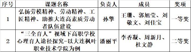 根据 2022 年度工作安排和《关于发布弘扬新时代劳模精神劳动精神工匠精神教育研究课题的通知》,经各课题组申报,专家组评审,市职教社、市社科联、市教育局、市人社局、市总工会研究,大连枫叶职业技术学院马克思主义学院共有3项课题成功结项。